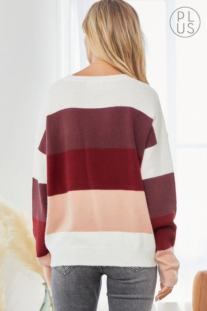 This colorblock sweater is ultra soft wool blend in different shades of colors! Super trendy, chic, and comfy!