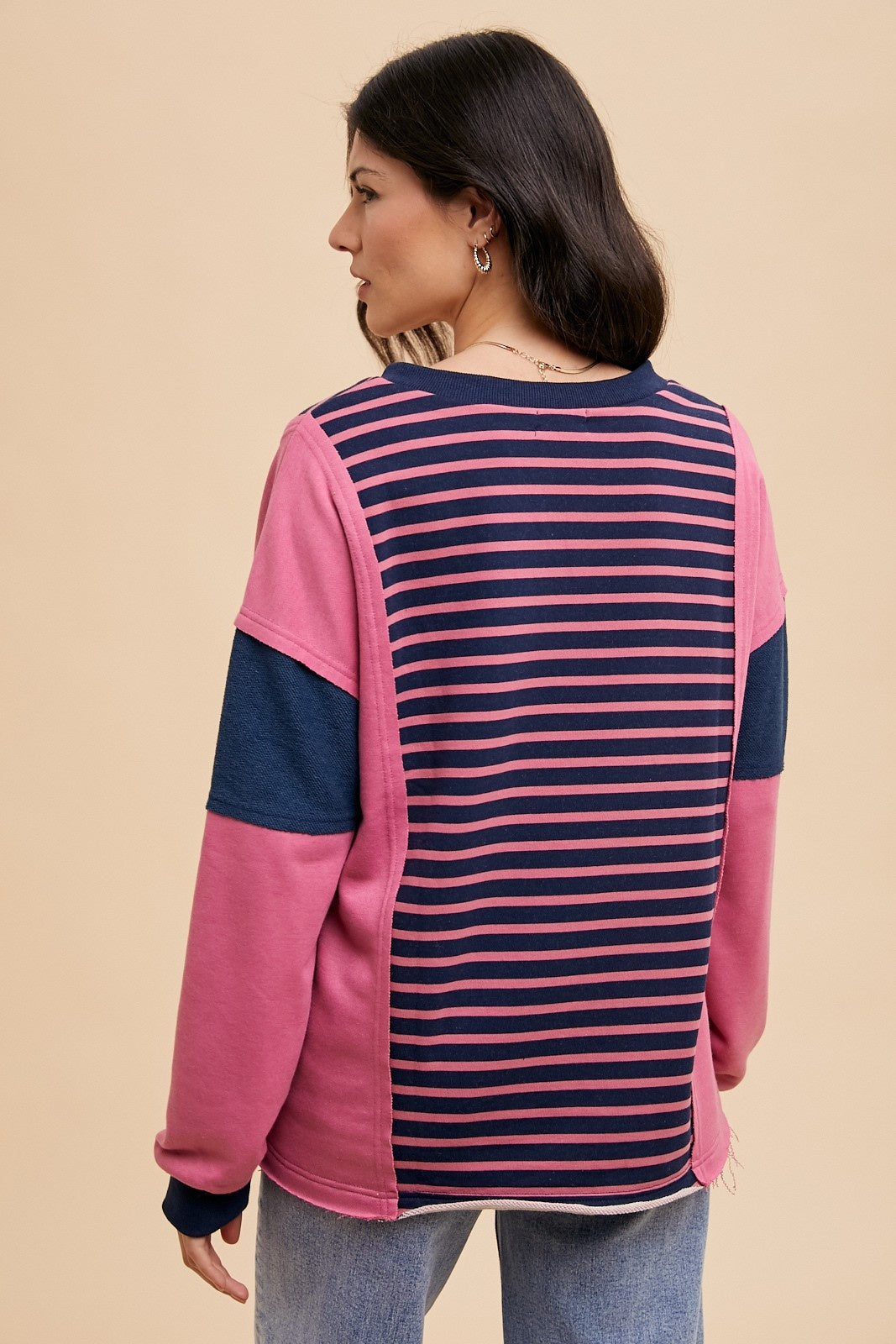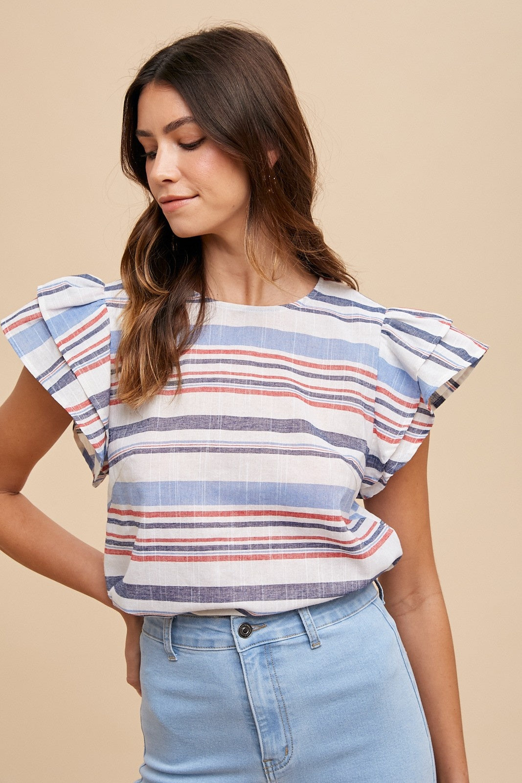 Stripe V Neck Babydoll Mini Dress Blue Medium
