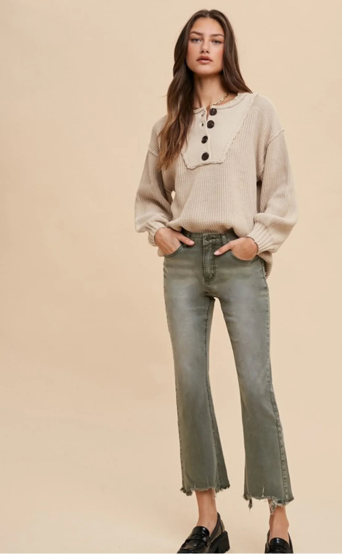 Stretch High Rise Pin Tuck Detail Wide Leg Jean