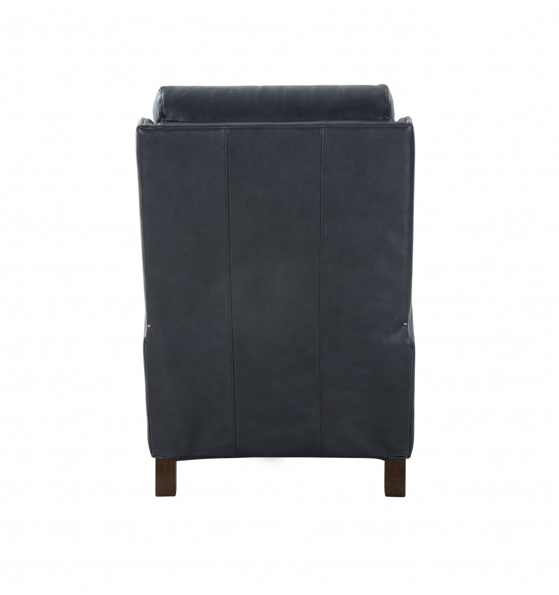44.9” high semi-attached pub back design, loose welted box seat cushion with pocketed coil springs encased in foam, wrapped in Dacron with a feather blend topper, footrest extension, nail head trim accents, and tapered wood legs finished in a warm mahogany finish. This chair was designed for people over 6’.