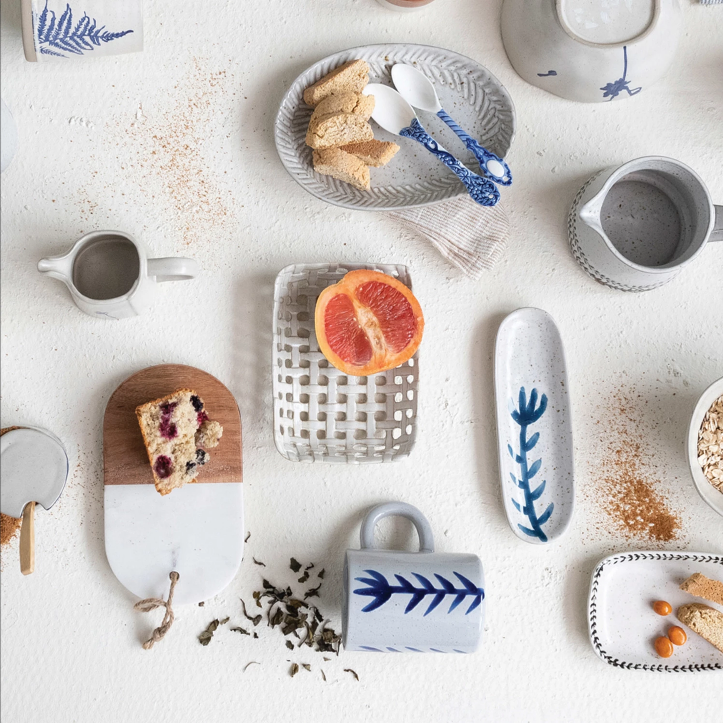 Handmade Stoneware Basket Dish, White