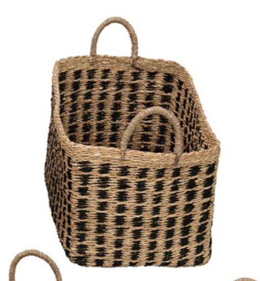 Small Hand-Woven Seagrass Basket w/ Handles, Black & Natural
