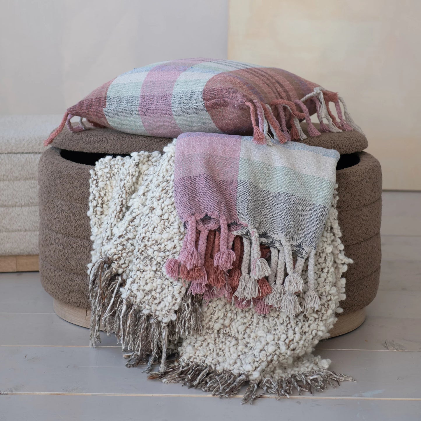 Add Cotton Blend Throw With Braided Fringe, Blush to the cart