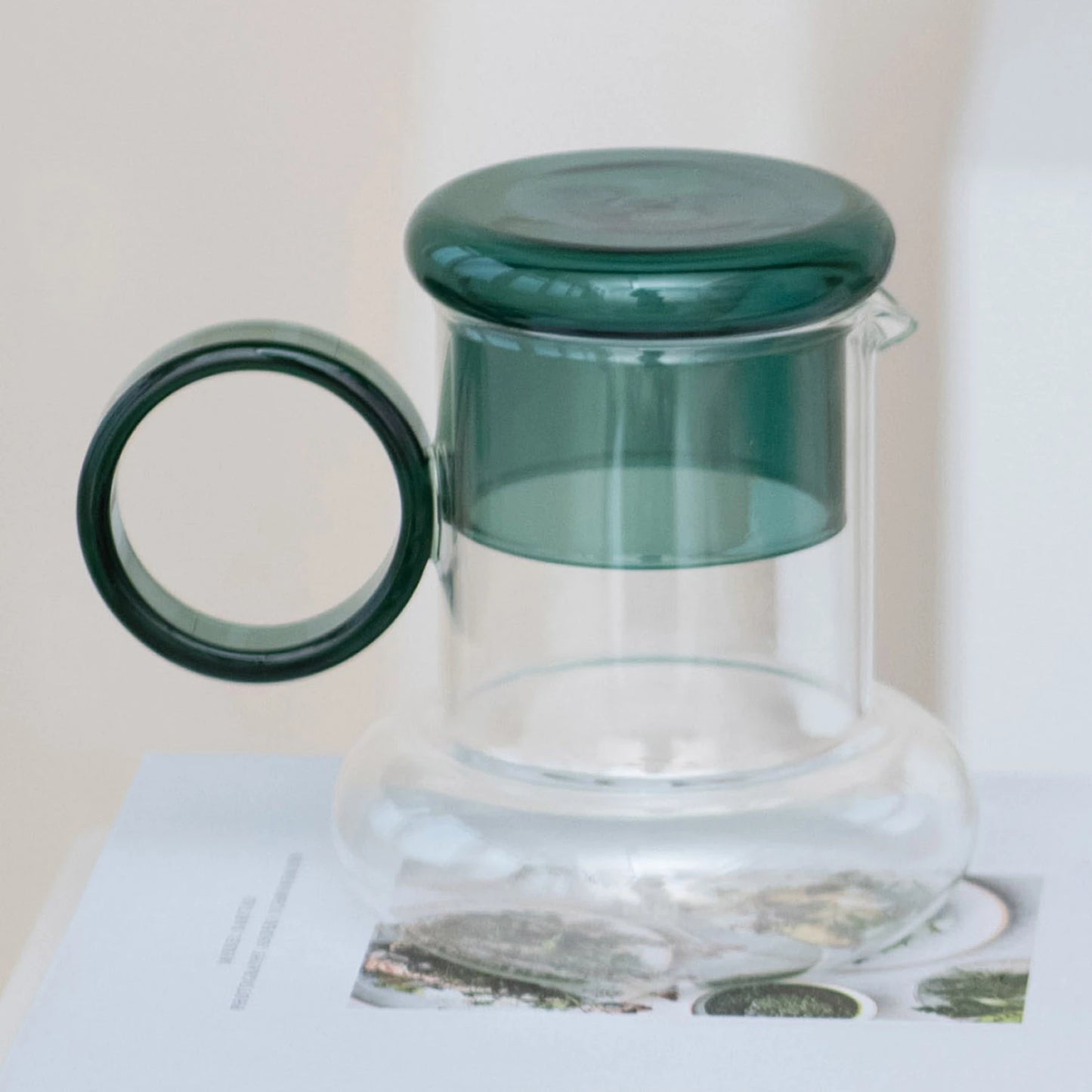 Glass Pitcher With Green Drinking Glass, Set of 2
