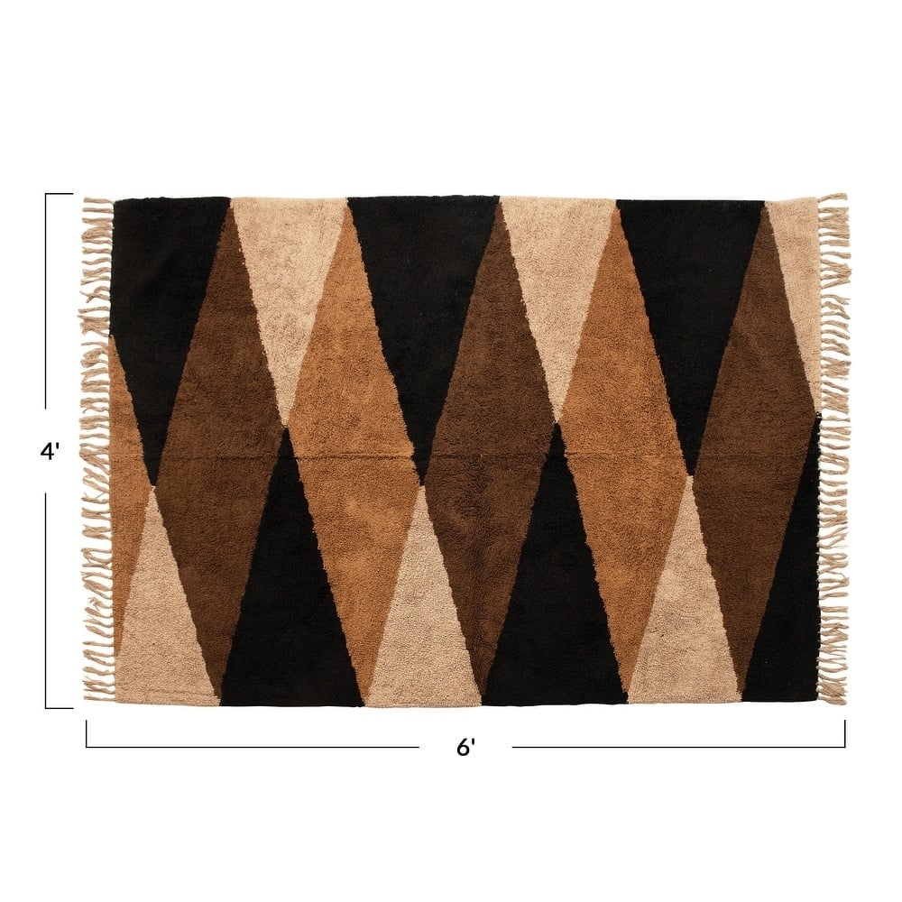 4' x 6' Cotton Tufted Print Rug with Fringe, Multi Color