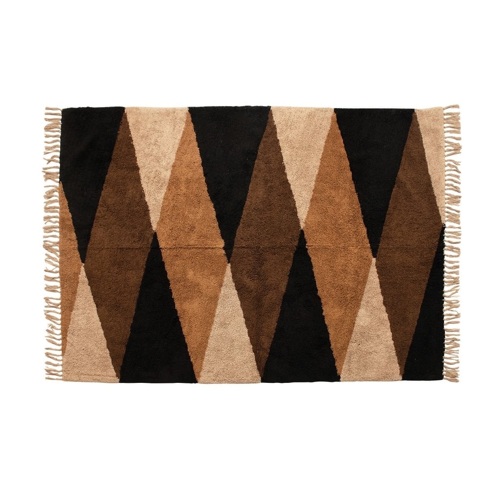 4' x 6' Cotton Tufted Print Rug with Fringe, Multi Color This attractive cotton tufted rug with fringe will be a stylish addition to a contemporary design theme.