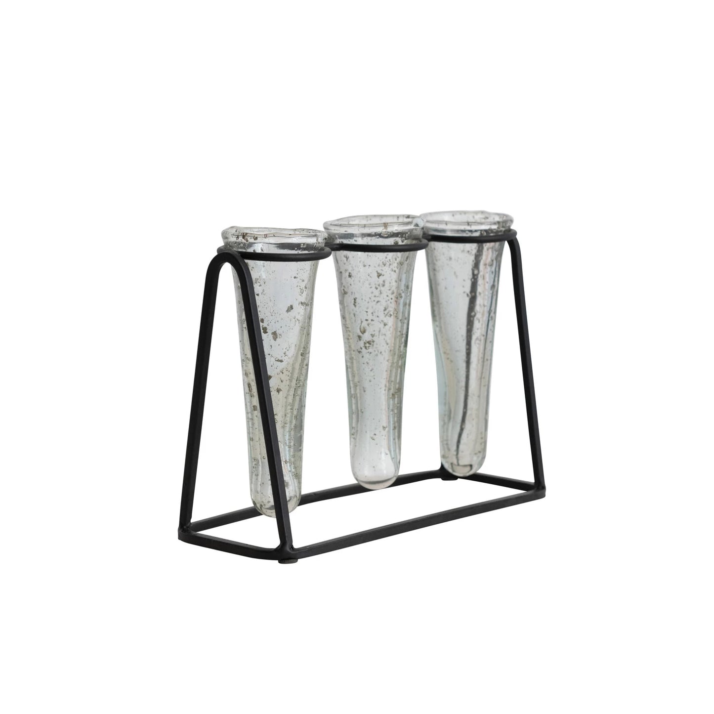 Elevate your space with this Black Metal Stand featuring three sleek glass bud vases. Perfectly designed as a minimalist centerpiece, it beautifully displays floral arrangements while adding a modern touch to any tabletop. Crafted for both style and simplicity, this decorative trio combines sturdy metal with clear glass, creating a striking contrast that complements contemporary home decor. Ideal for highlighting delicate blooms or greenery, this versatile set transforms ordinary flowers into an elegant statement.