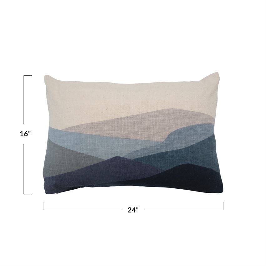 Cotton Printed Lumbar Pillow w/ Mountains, Multi Color