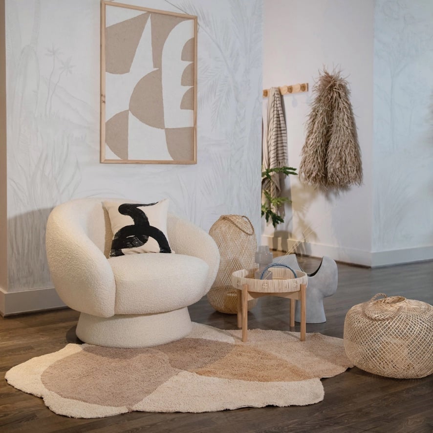 This whimsical and abstract cotton tufted rug will add a delightful floor decor to your design theme. It brings an artful and flowing touch to a bedroom, living room, sitting room, or office. And this soft and plush rug will be a great addition to a reading nook or a favorite sitting space in your home.