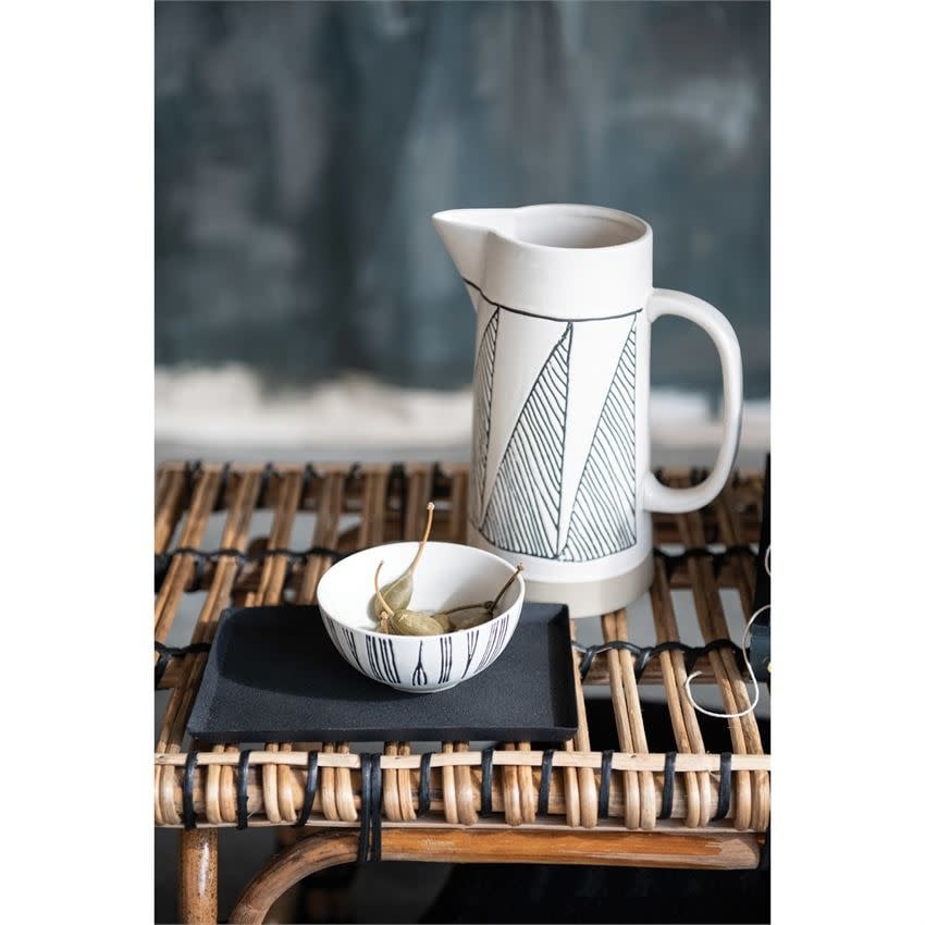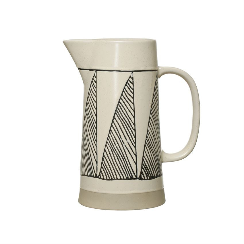 7-3/4"L x 3-1/2"W x 9"H 32 oz. Embossed Stoneware Pitcher, Black & Cream Color