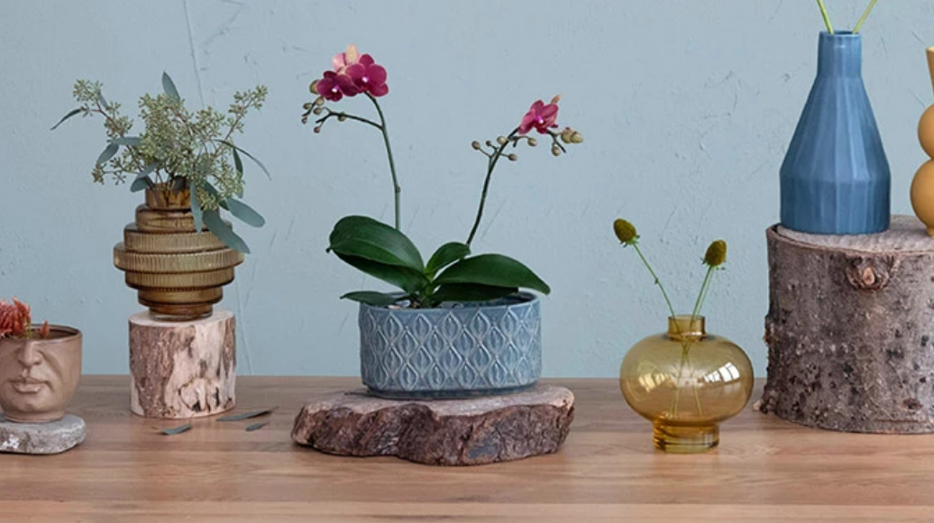 Embossed Stoneware Planter, Reactive Glaze, Teal (Each One Will Vary)