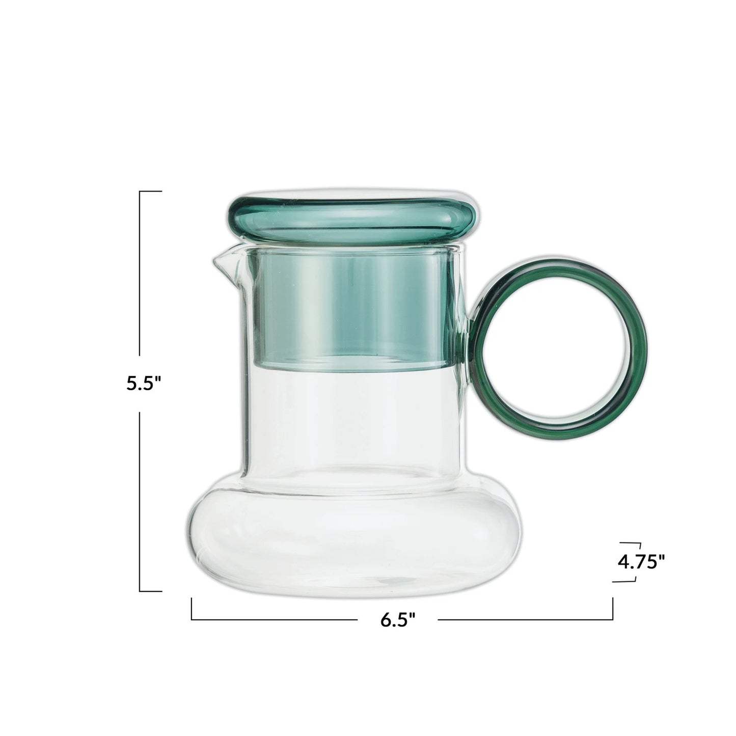 6-1/2"L x 4-3/4"W x 5-1/2"H 16 oz. Glass Pitcher w/ 8 oz. Green Drinking Glass, Set of 2