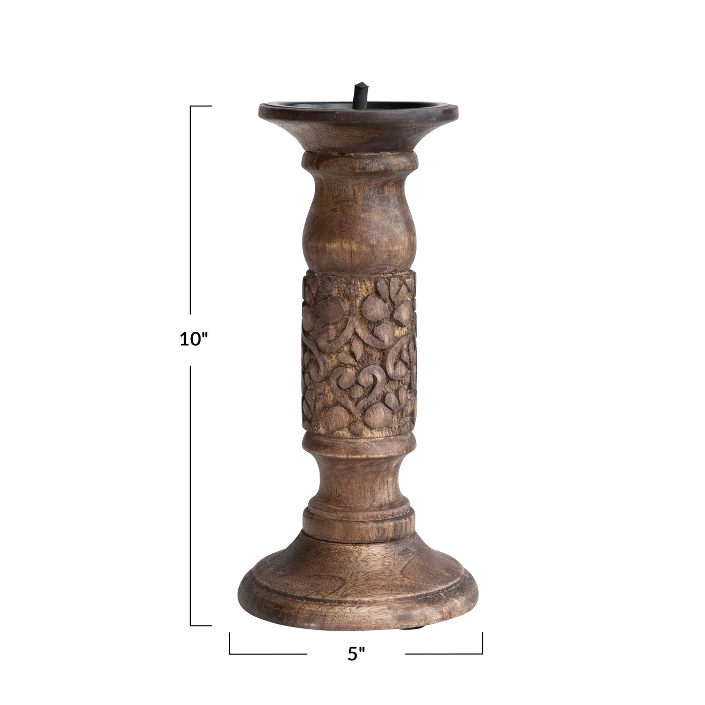 Hand-Carved Mango Wood Candle Holder w/ Design