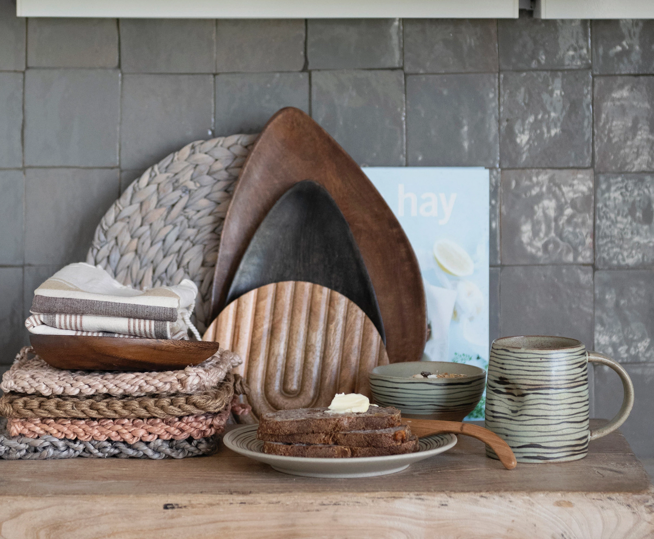 8" Round Hand-Carved Mango Wood Trivet, Walnut Finish