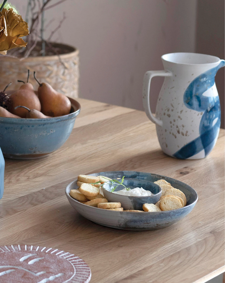 Hand-Painted Stoneware Pitcher, Reactive Glaze