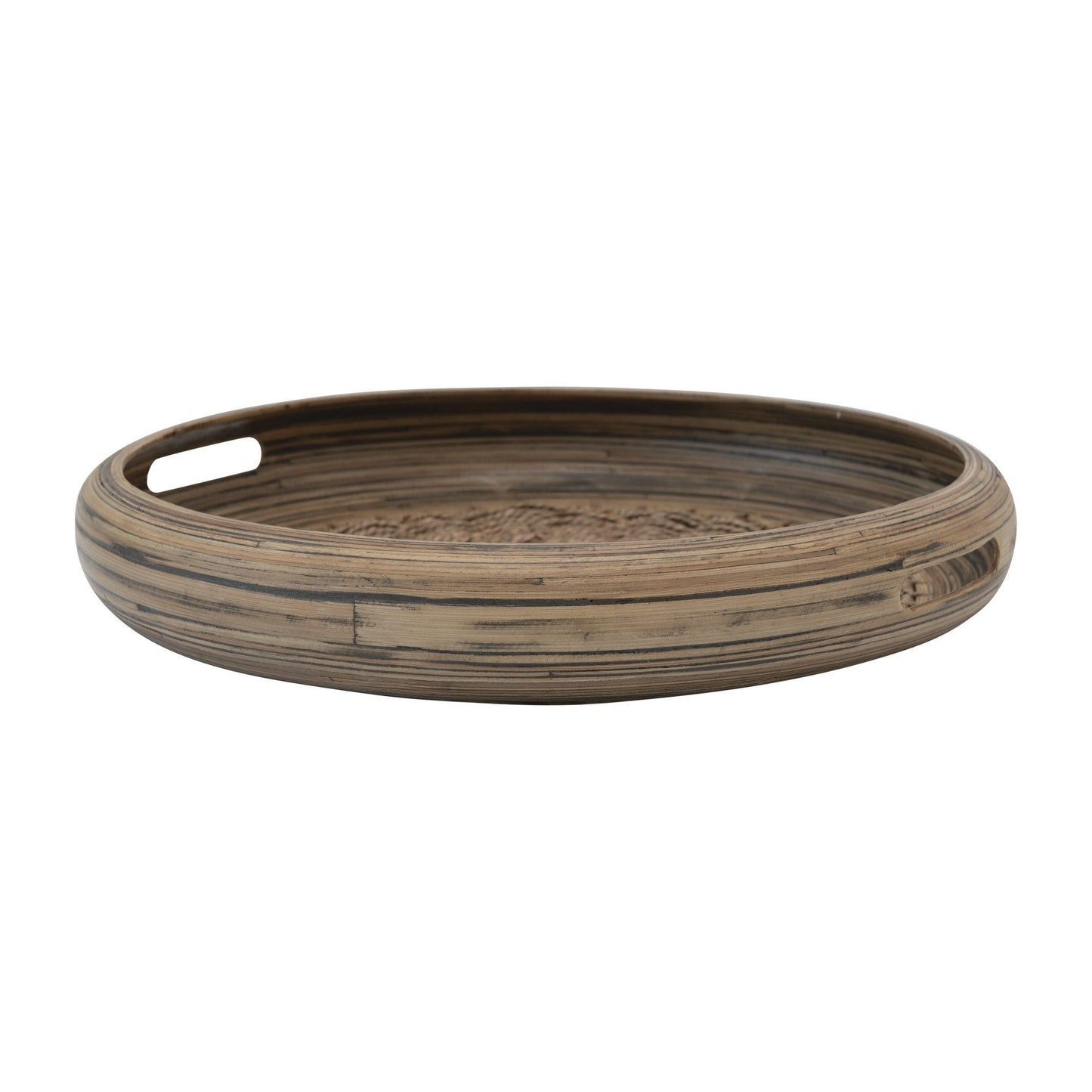 19-3/4" Round Decorative Handmade Bamboo & Seagrass Tray w/ Handles, Natural
