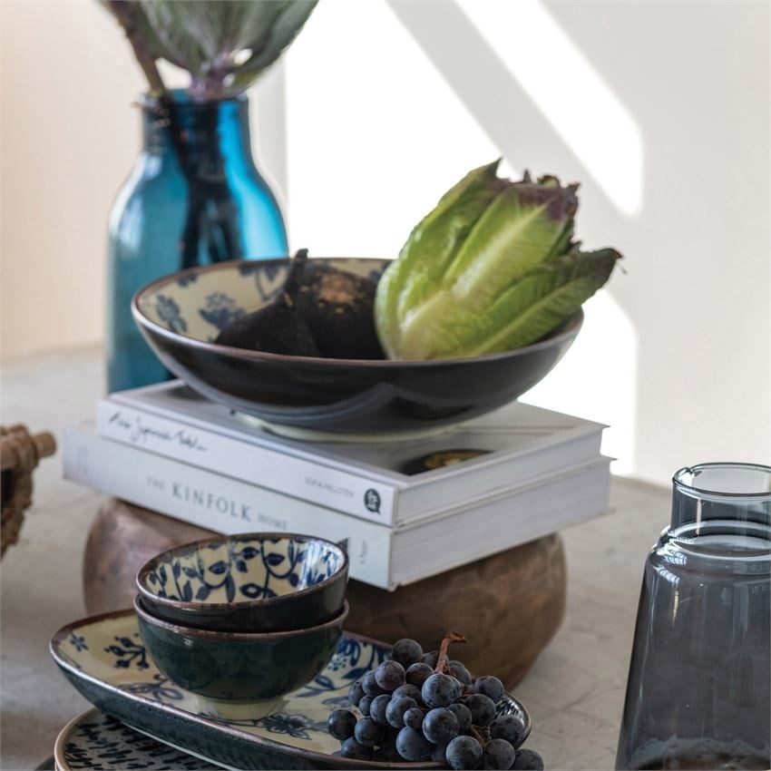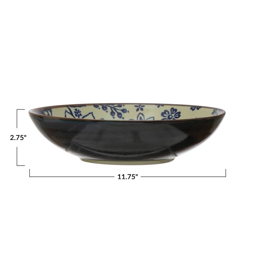 Stoneware Bowl with Pattern, Blue & Cream Color