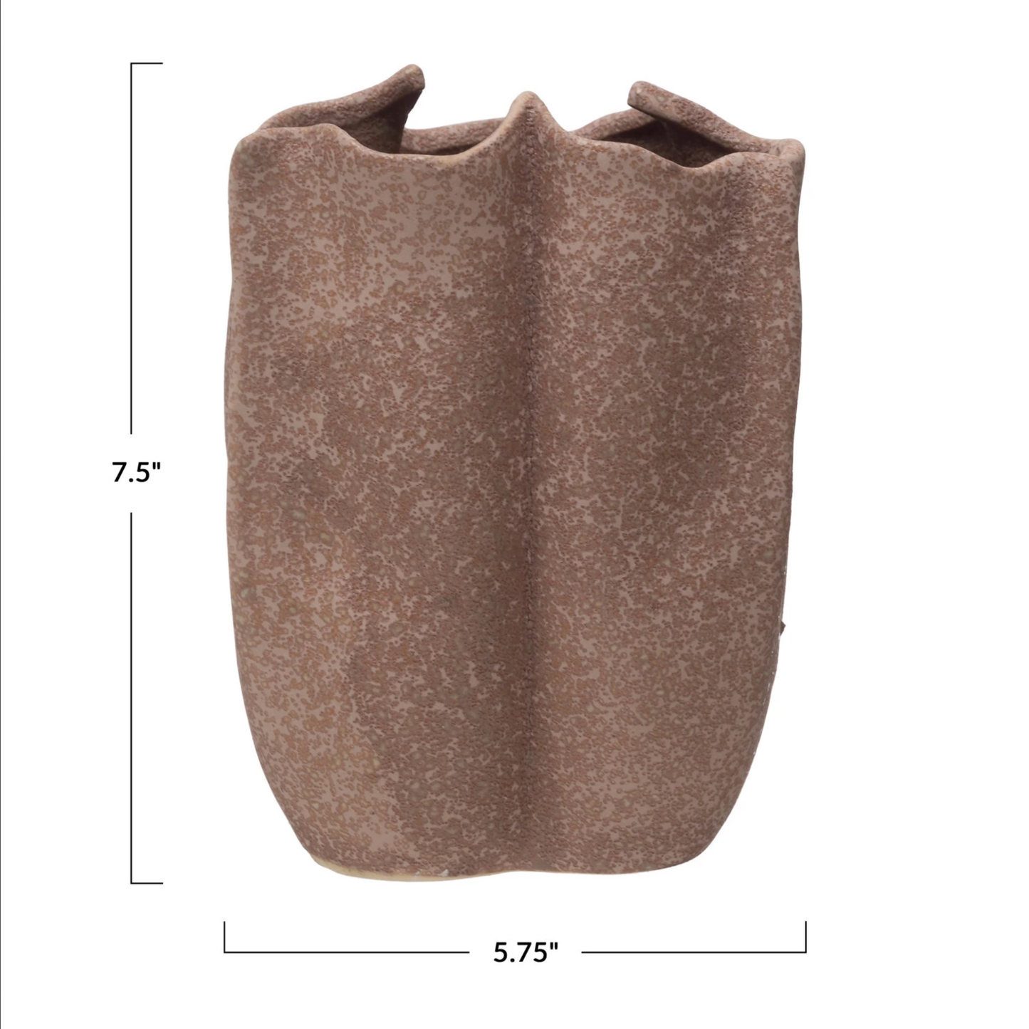 Stoneware Vase, Distressed Reactive Glaze, Matte Lilac Color