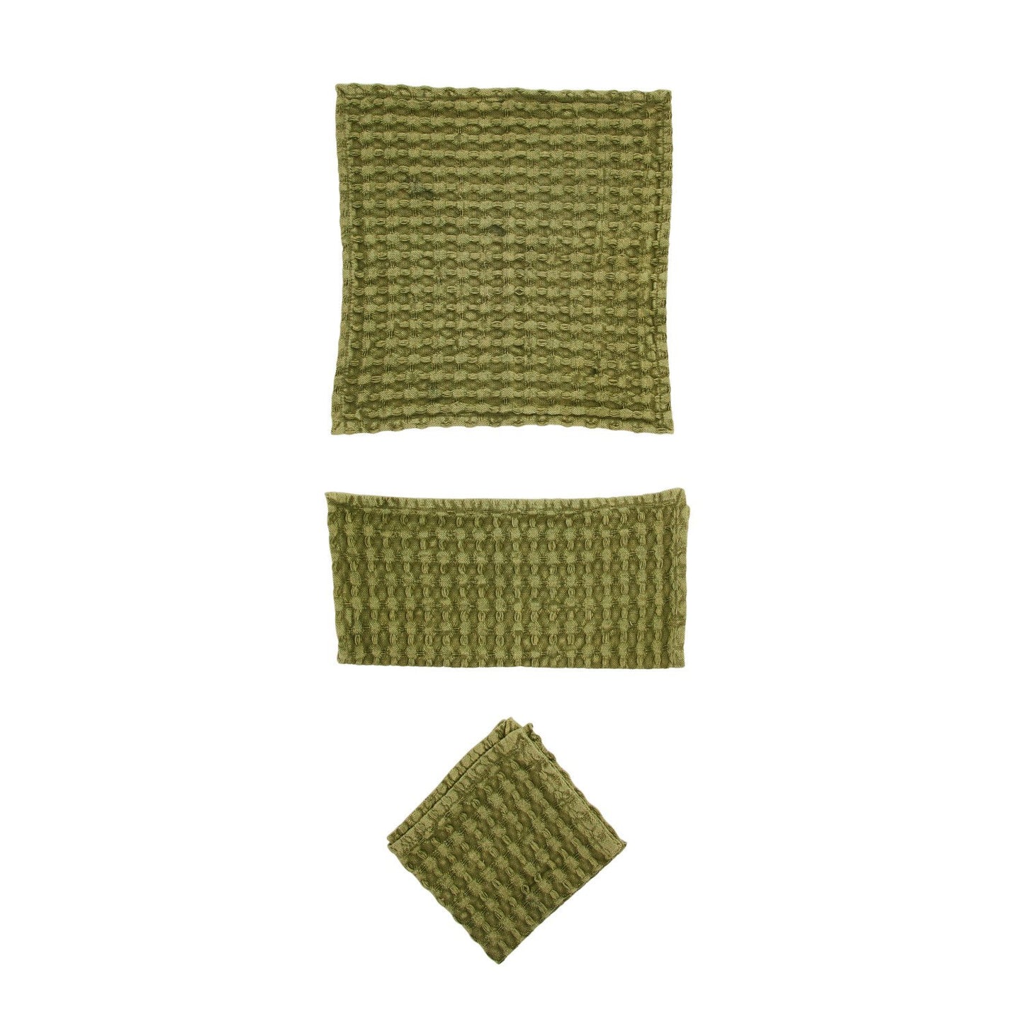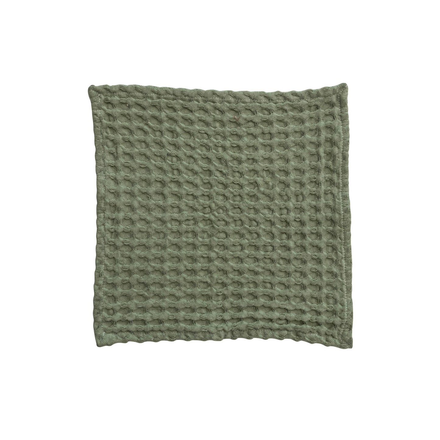 10-1/2" Square Stonewashed Cotton Waffle Weave Dish Cloths, Green, Set of 3