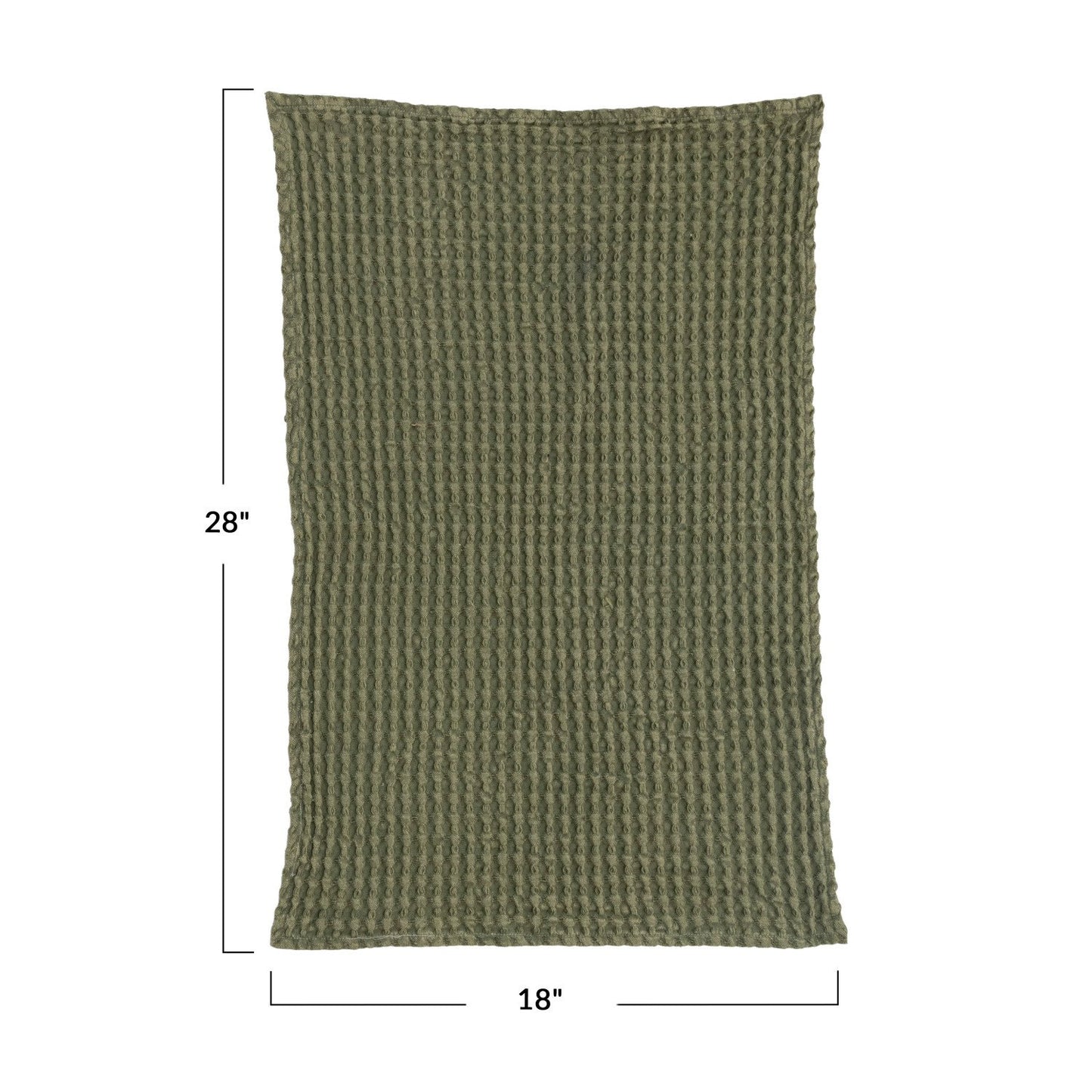 28"L x 18"W Stonewashed Cotton Waffle Weave Kitchen Towel, Green