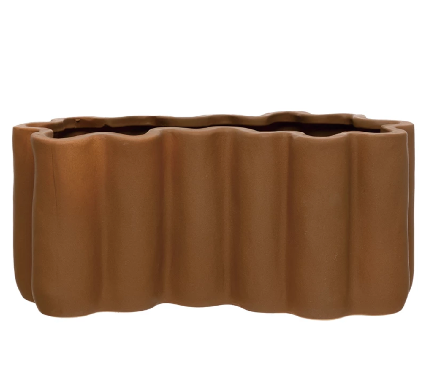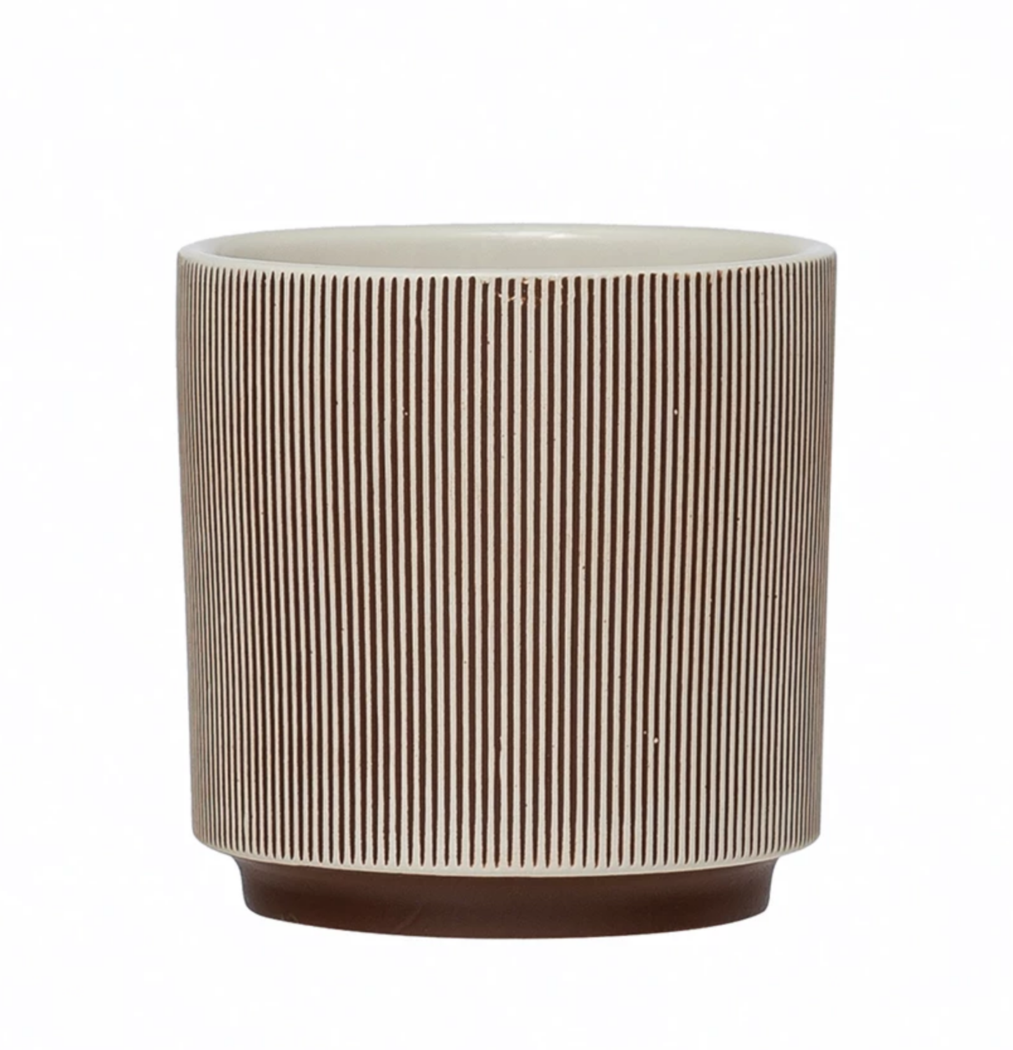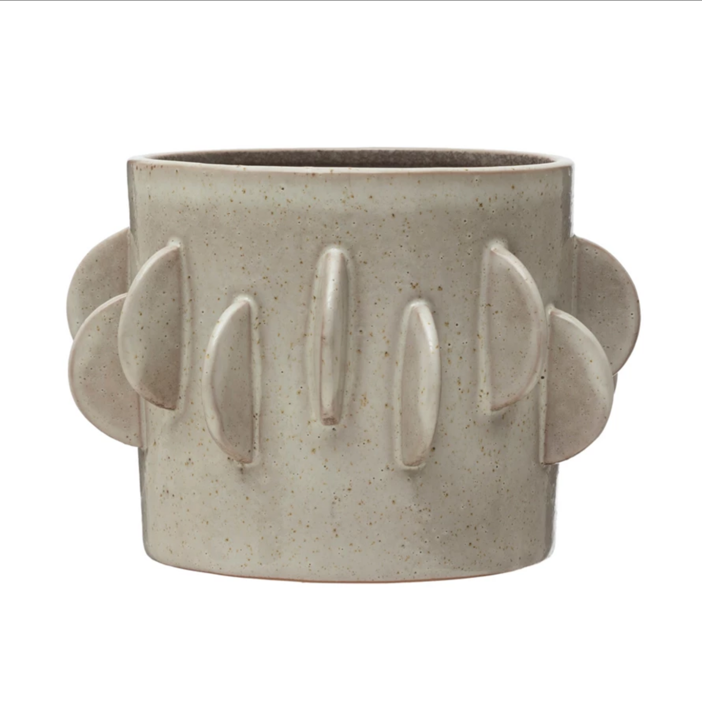 Handmade Stoneware Planter, Reactive Glaze, Antique White