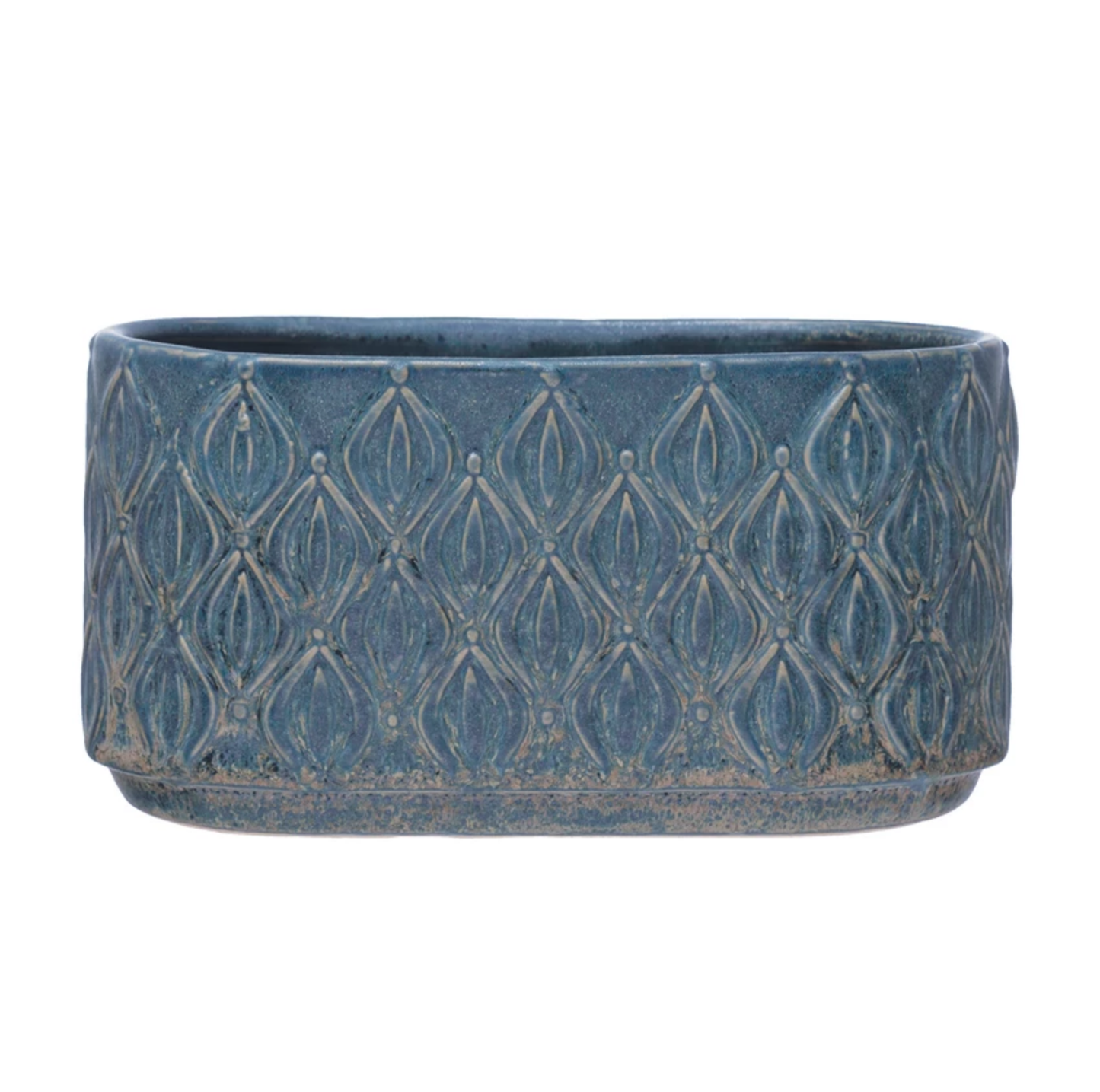 Add Handmade Stoneware Planter, Reactive Glaze, Antique White to the cart