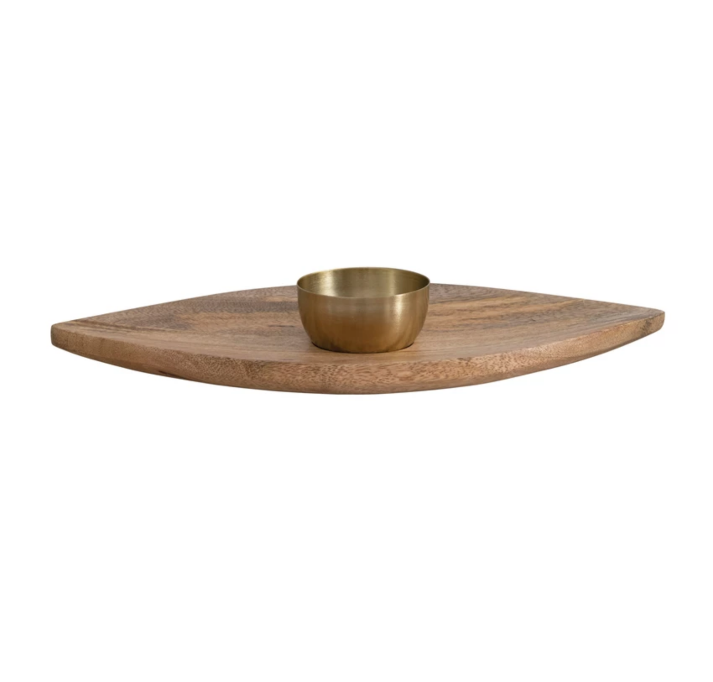 Mango Wood and Aluminum Abstract Shaped Chip and Dip