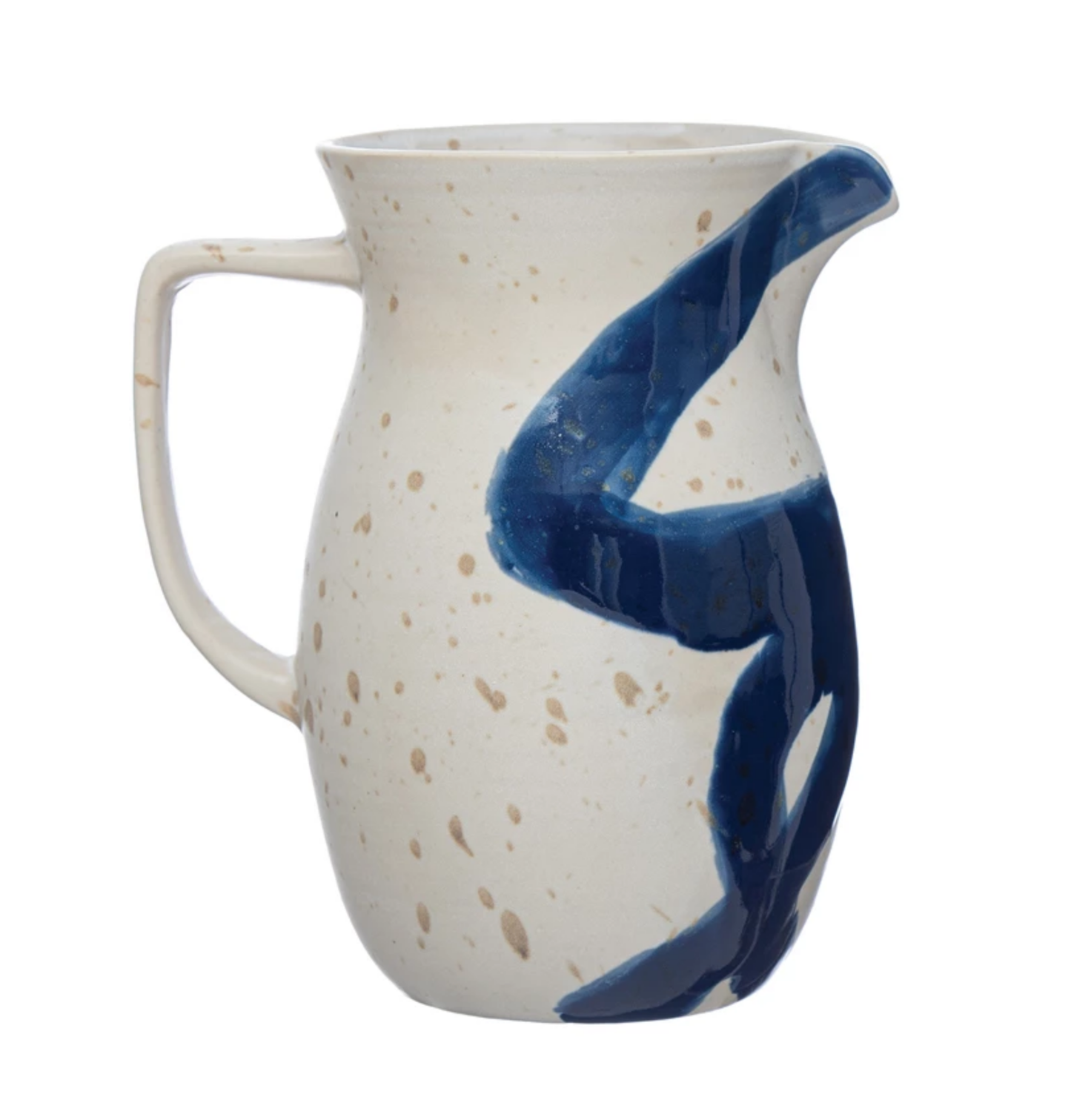 Hand-Painted Stoneware Pitcher, Reactive Glaze