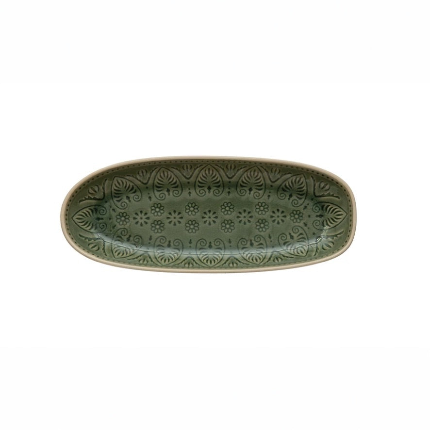 Debossed Stoneware Serving Platter, Crackle Glaze