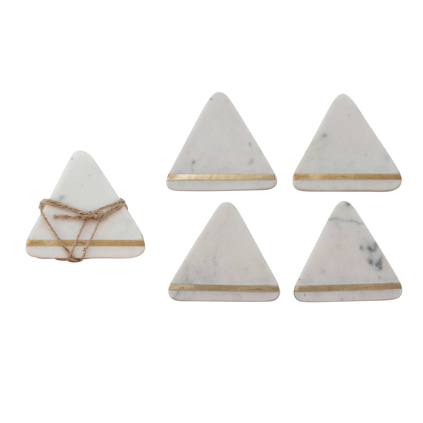 Triangular Marble Coasters with Metal Inlay, Set of 4