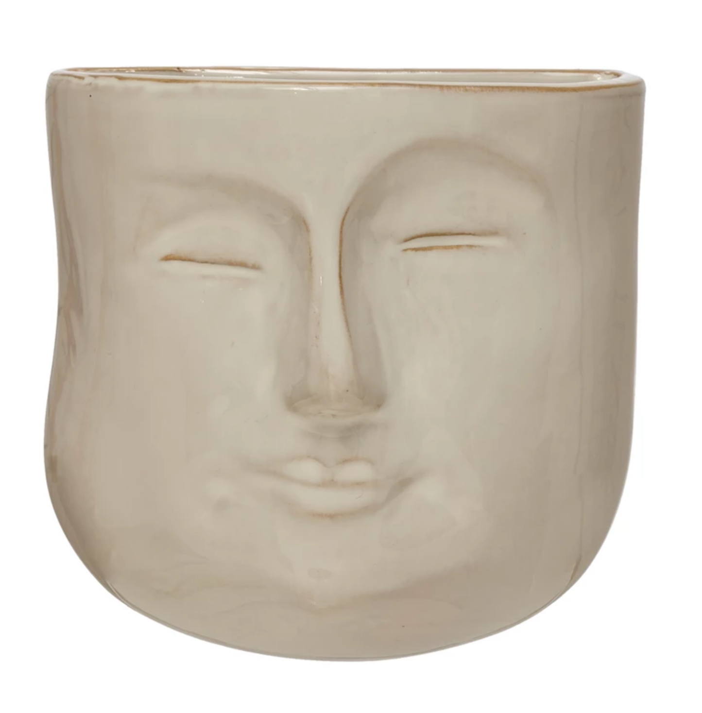 Stoneware Wall Planter with Face, Reactive Glaze