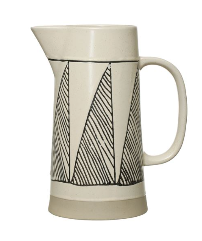 Embossed Stoneware Pitcher, Cream and Black