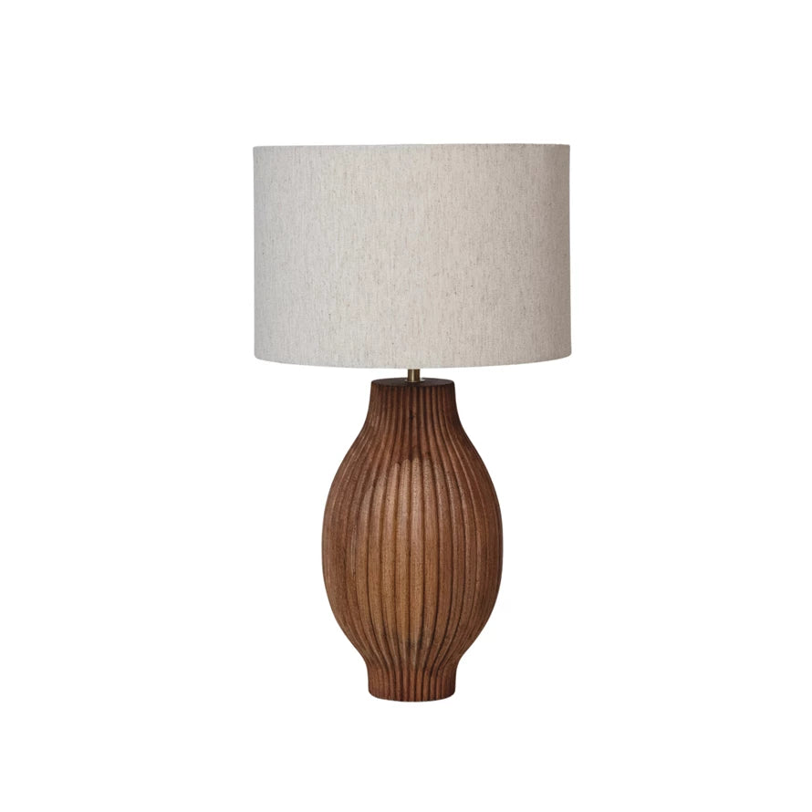 Mango Wood Table Lamp With Carved Lines