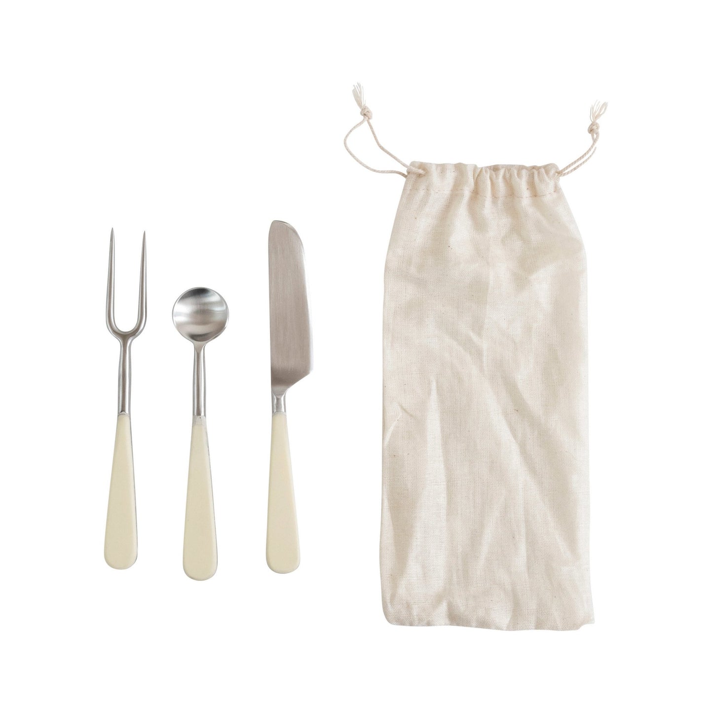 Stainless Steel and Resin Appetizer Utensils, Set of 3 in Drawstring Bag