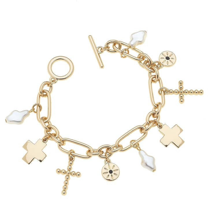 Abigail Multi Cross Charm Bracelet in Shiny Gold