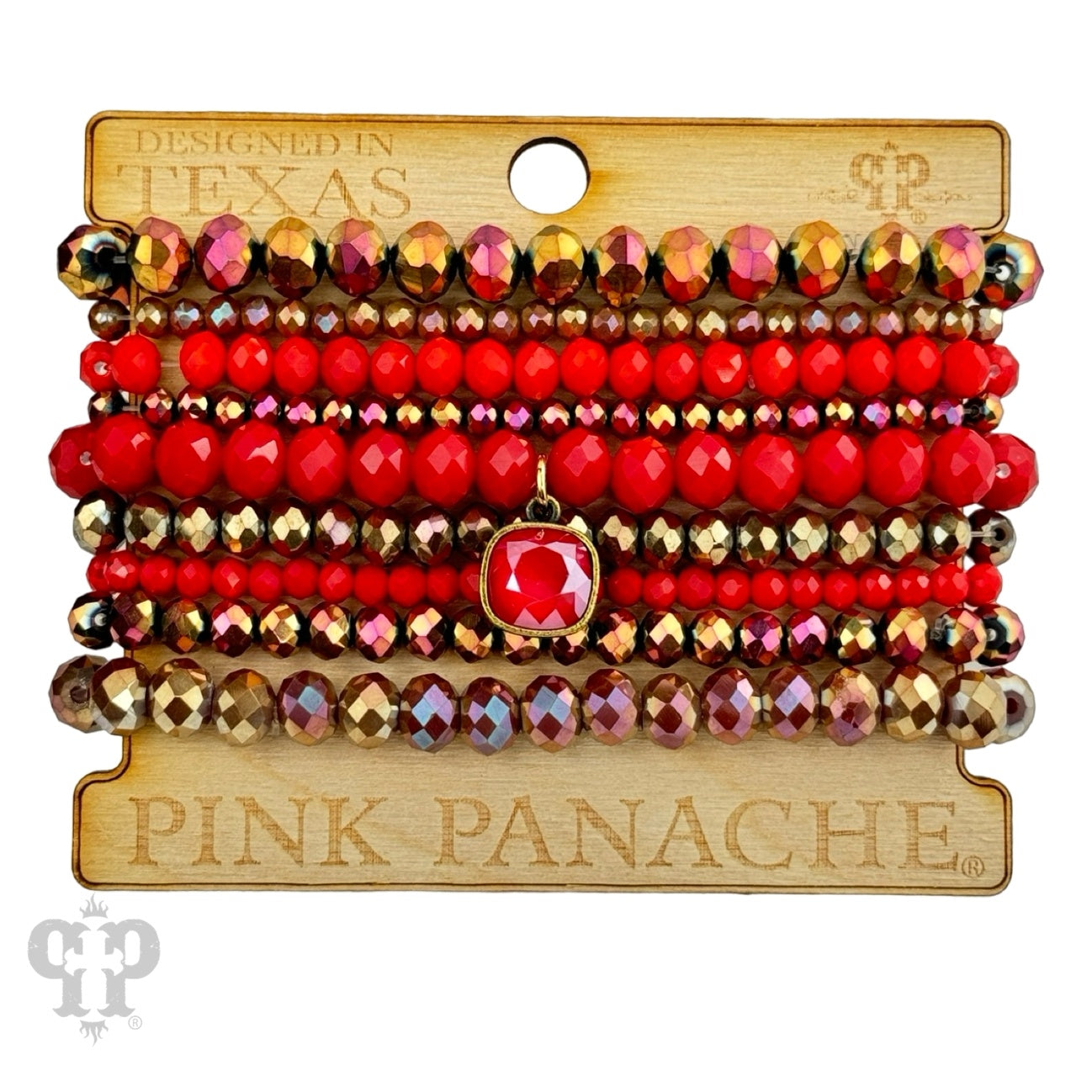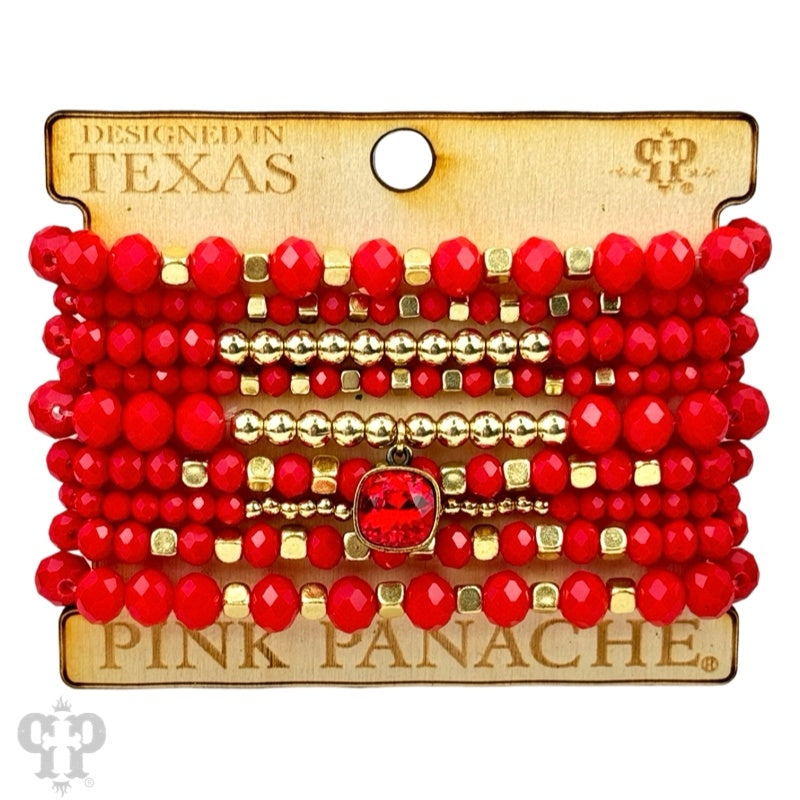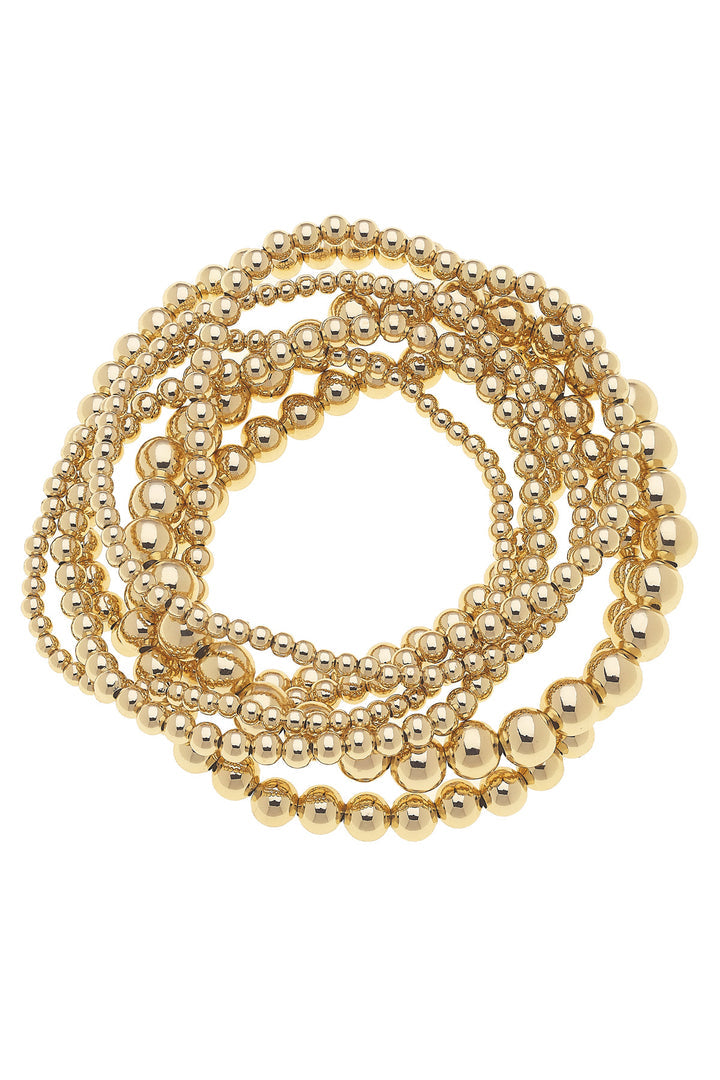 Ruby Ball Bead Stretch Bracelet Set (7) in Shiny Gold