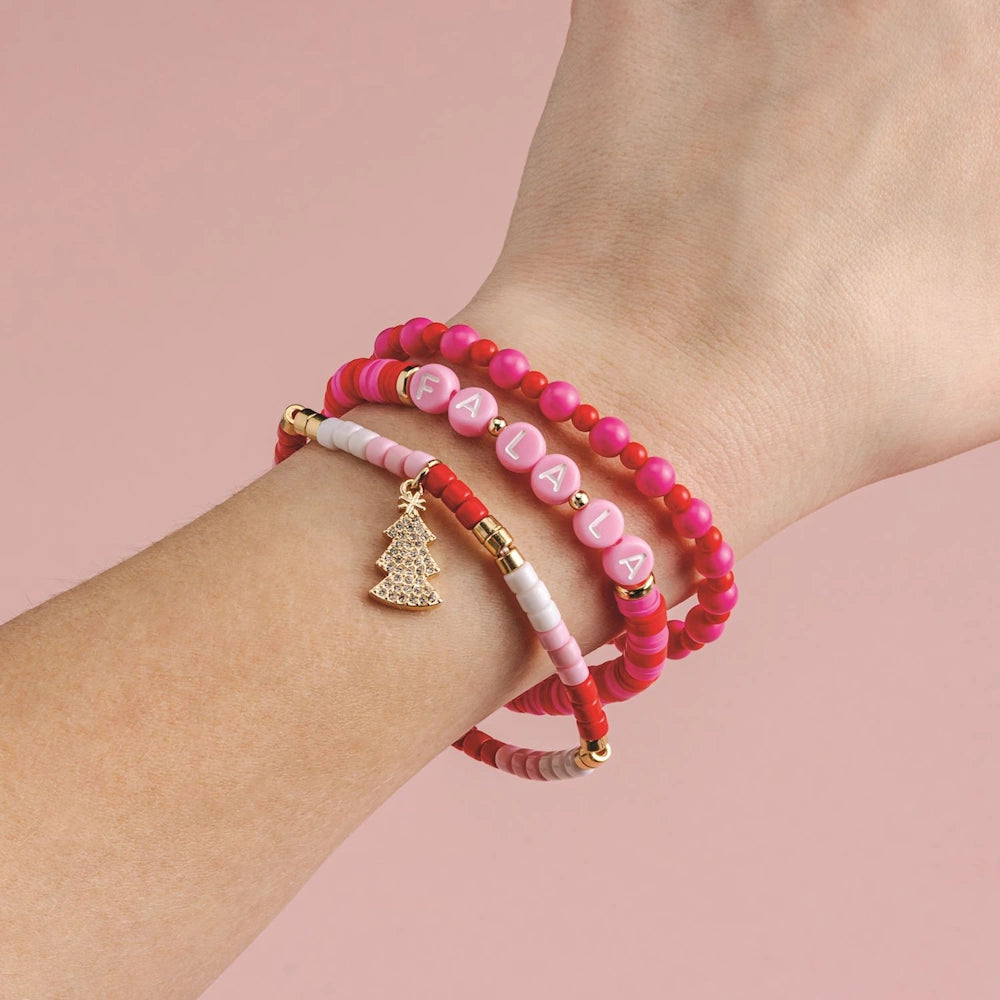 Christmas Cheer Enamel Charm Bracelet in Red/Pink/White