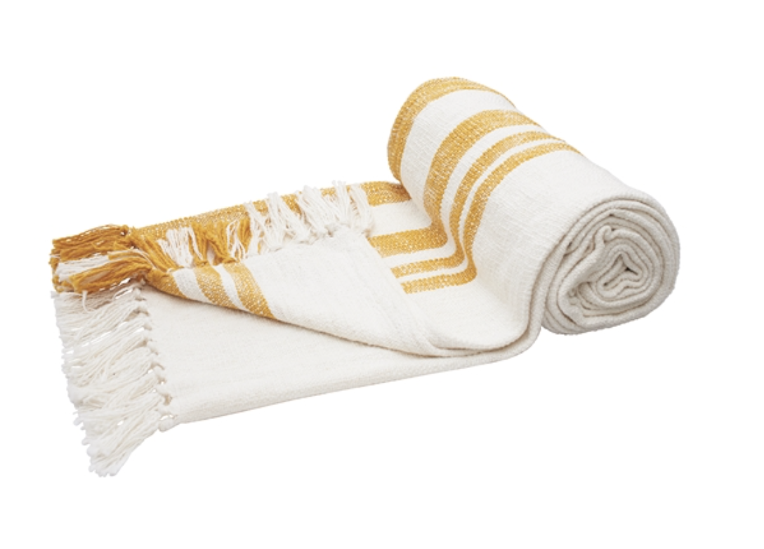 No matter the weather, it's clear skies and sunshine in your home with the Morgan throw. Hand-loomed of cotton slub with a classic striped design in trending colors, Morgan is the ideal combination of timeless comfort and modern style. And don't worry, a cascade of chic hand-tied tassels is the closest you'll get to a downpour here. With Morgan, your moment in the sun never ends. Crafted by artisans committed to fair-labor practices. Machine washable for easy care and maintenance.