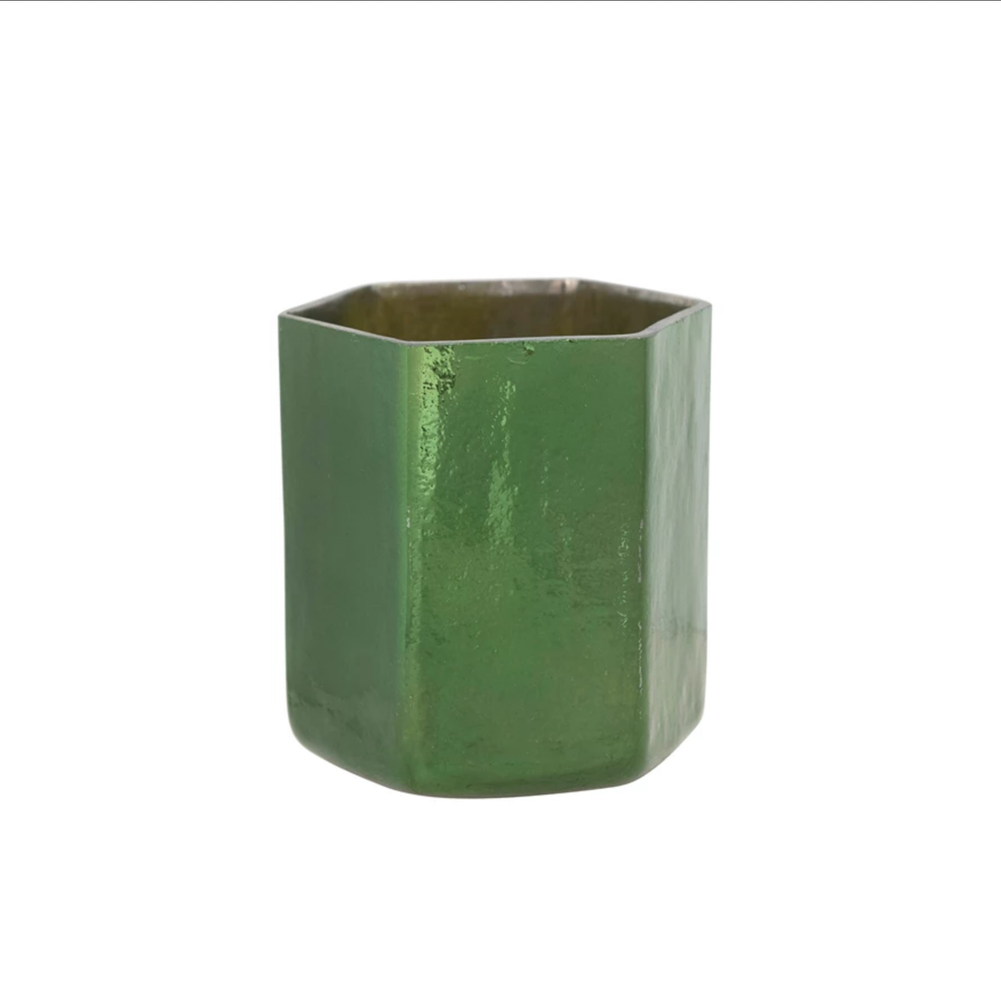 Mercury Glass Hexagon Tealight Holder, Green Finish