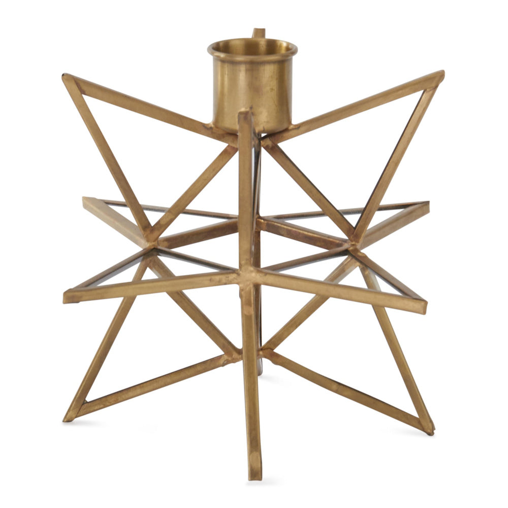 3-Dimensional Gold Metal & Glass Star Taper Candleholder