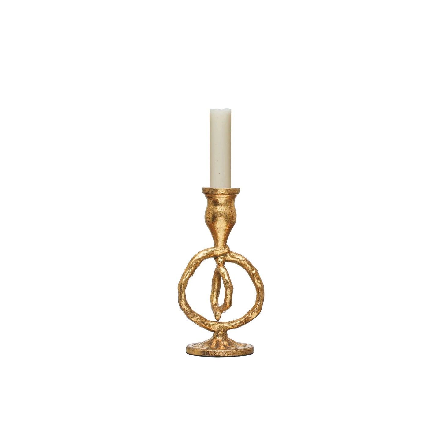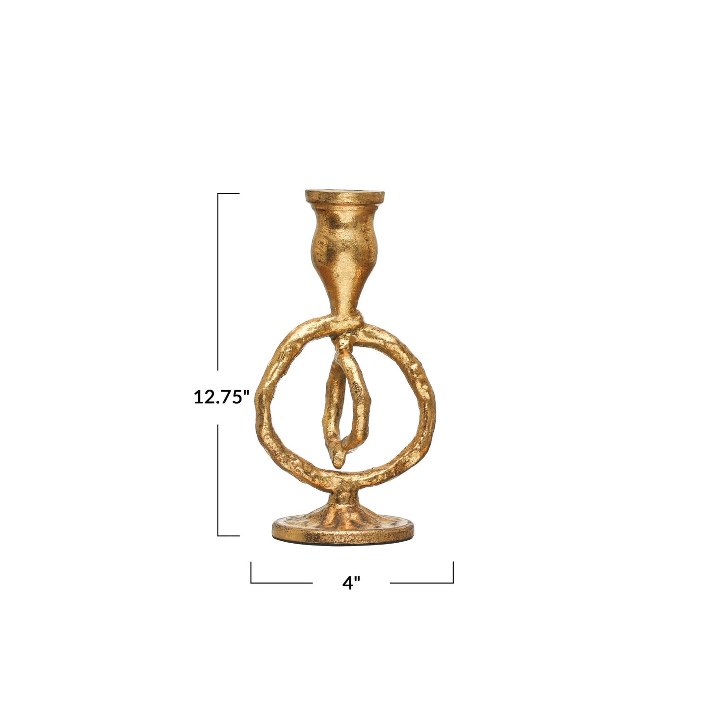 4"L x 2-1/2"W x 7-1/2"H Cast Iron Organic Ring Shaped Taper Holder, Gold Finish