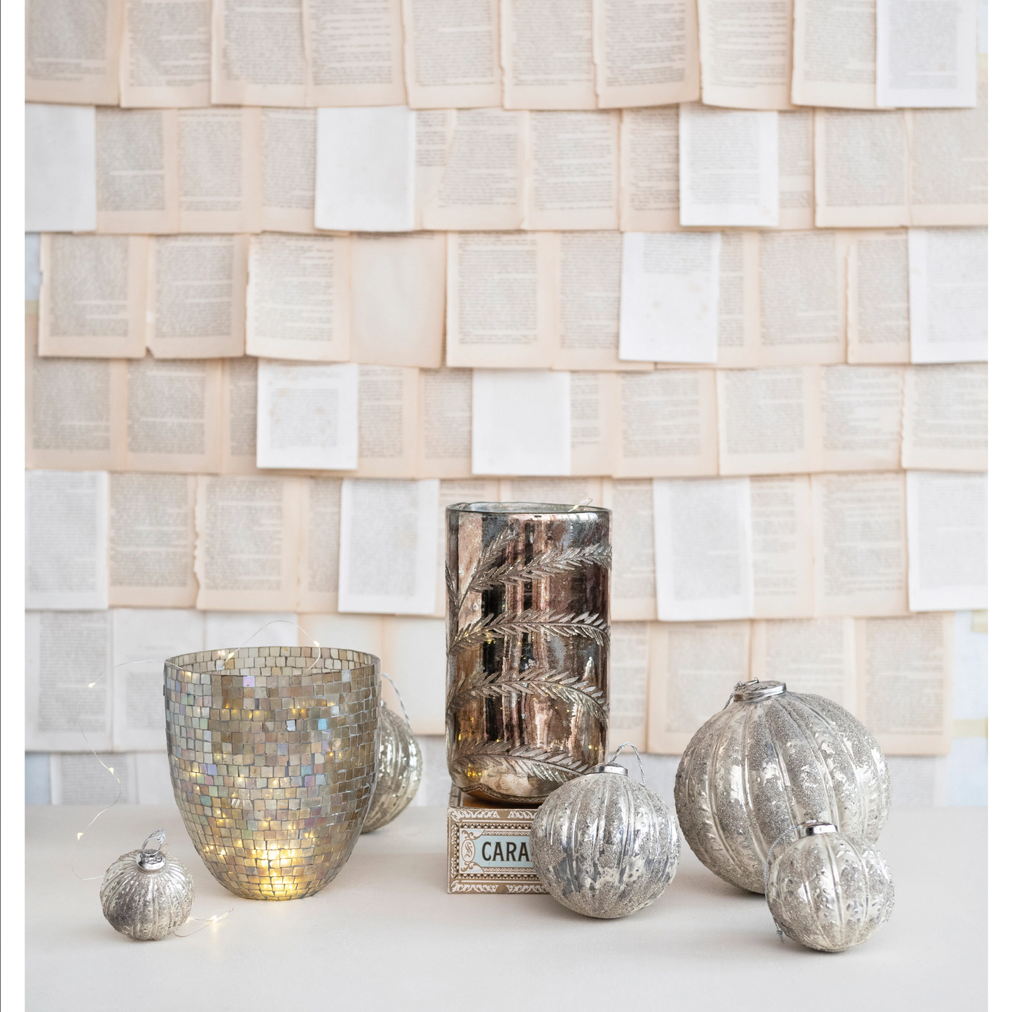 Etched Glass Hurricane, Antique Silver Finish