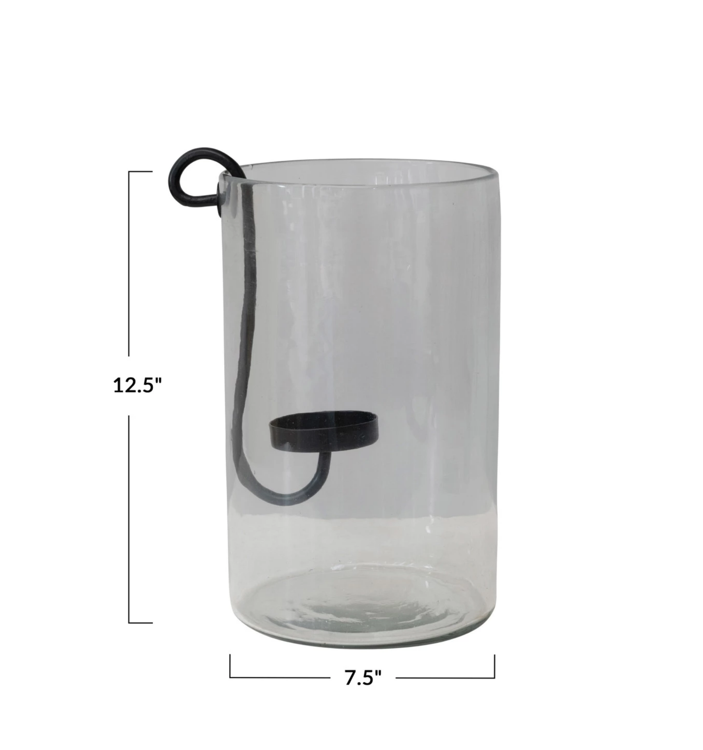 Glass Hurricane w/ Metal Candle Holder, Black, Set of 2