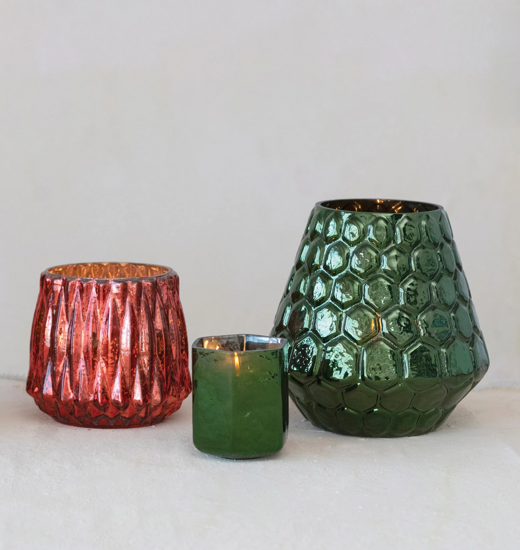Mercury Glass Hexagon Tealight Holder, Green Finish