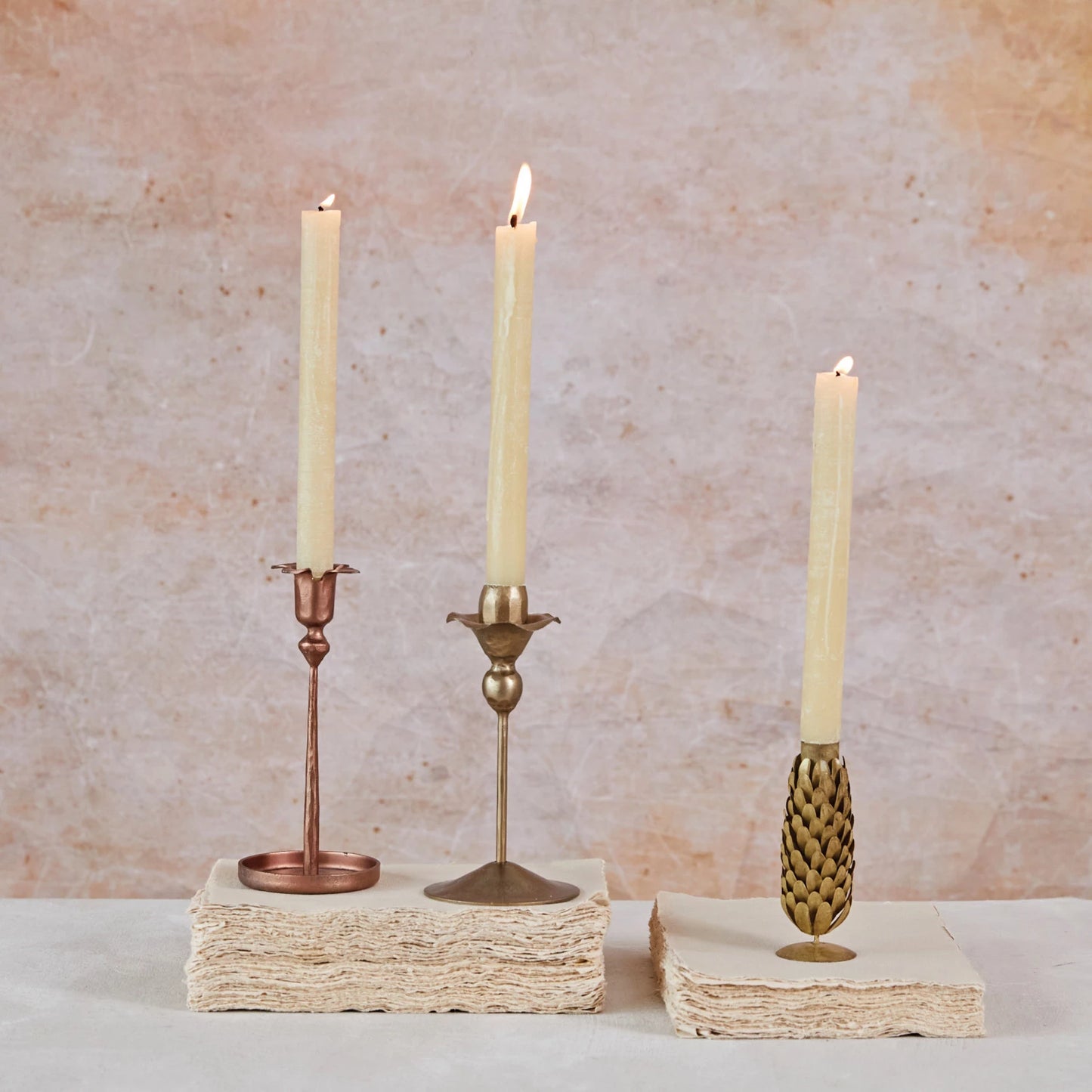 Hand-Forged Cast Iron Taper Holder, Copper Finish