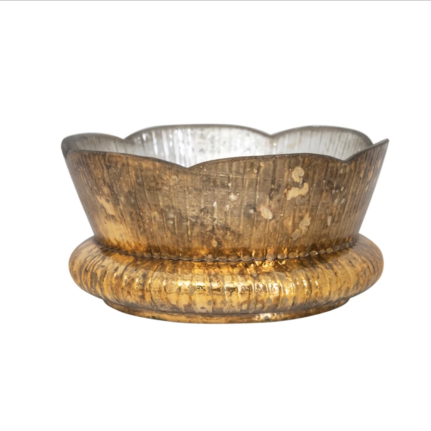 Mercury Glass Tealight Holder, Antique Gold Finish