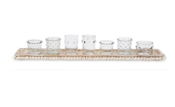 Wood Tray with 5 Glass Tealight/Votive Holders, Multi Color, Set of 6