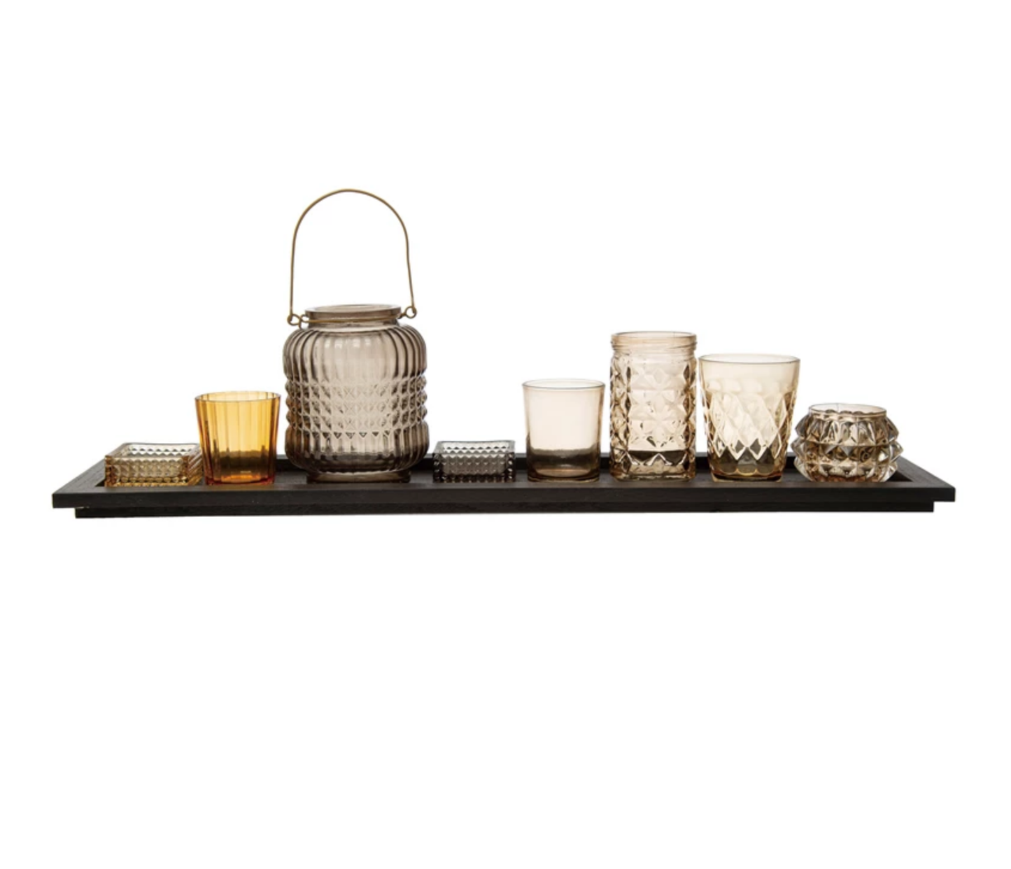 Embossed Glass Tealight/Votive Holders w/ Black Finish Wood Tray
