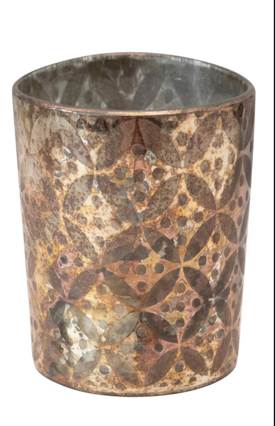 Mercury Glass Votive Holder with Design, Antique Copper Finish, 2 Styles