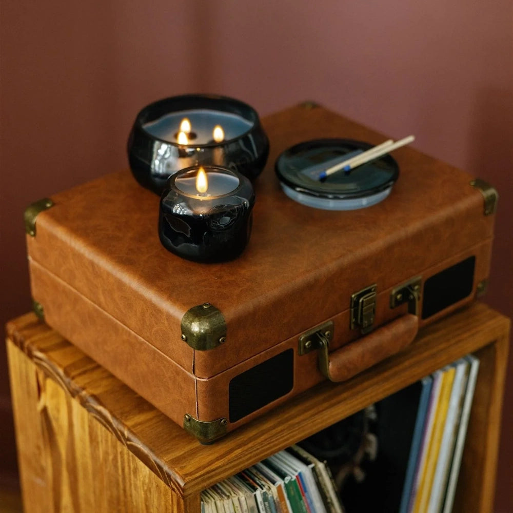 Basalt Navy Tinted Glass Candle - Rosewater Santal